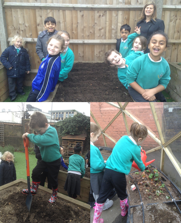 Gardening club have been enjoying using the seeds and equipment donated by the PTC. So far we have planted sweet peas and carrots in the dome and onions in the secret garden. The children learnt how to use a big spade to dig over one of the raised beds. They also found many wriggly earth worms (all safely returned!) If you look in the dome you will see that the carrots have already started to grow.